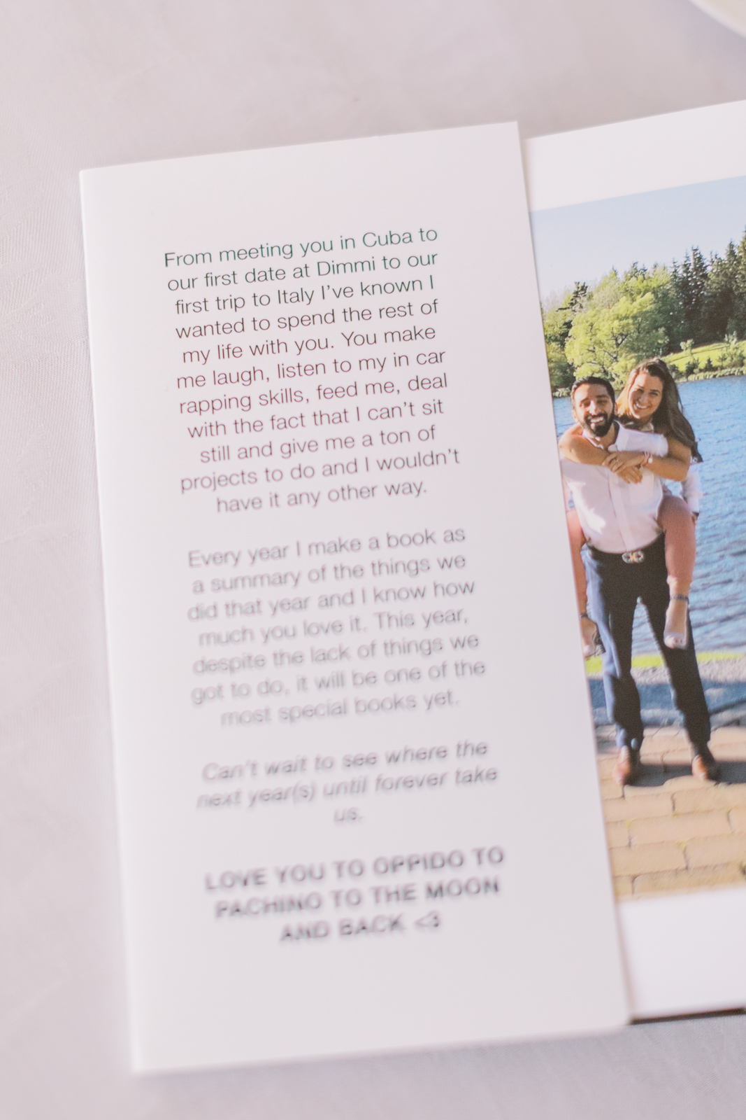 These two, Corrado and Guilia, were undeniably thoughtful. From the photo book he makes every year to document their lives together to the rose petal proposal, you can tell how much they care.