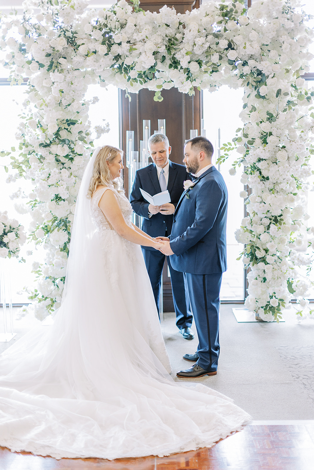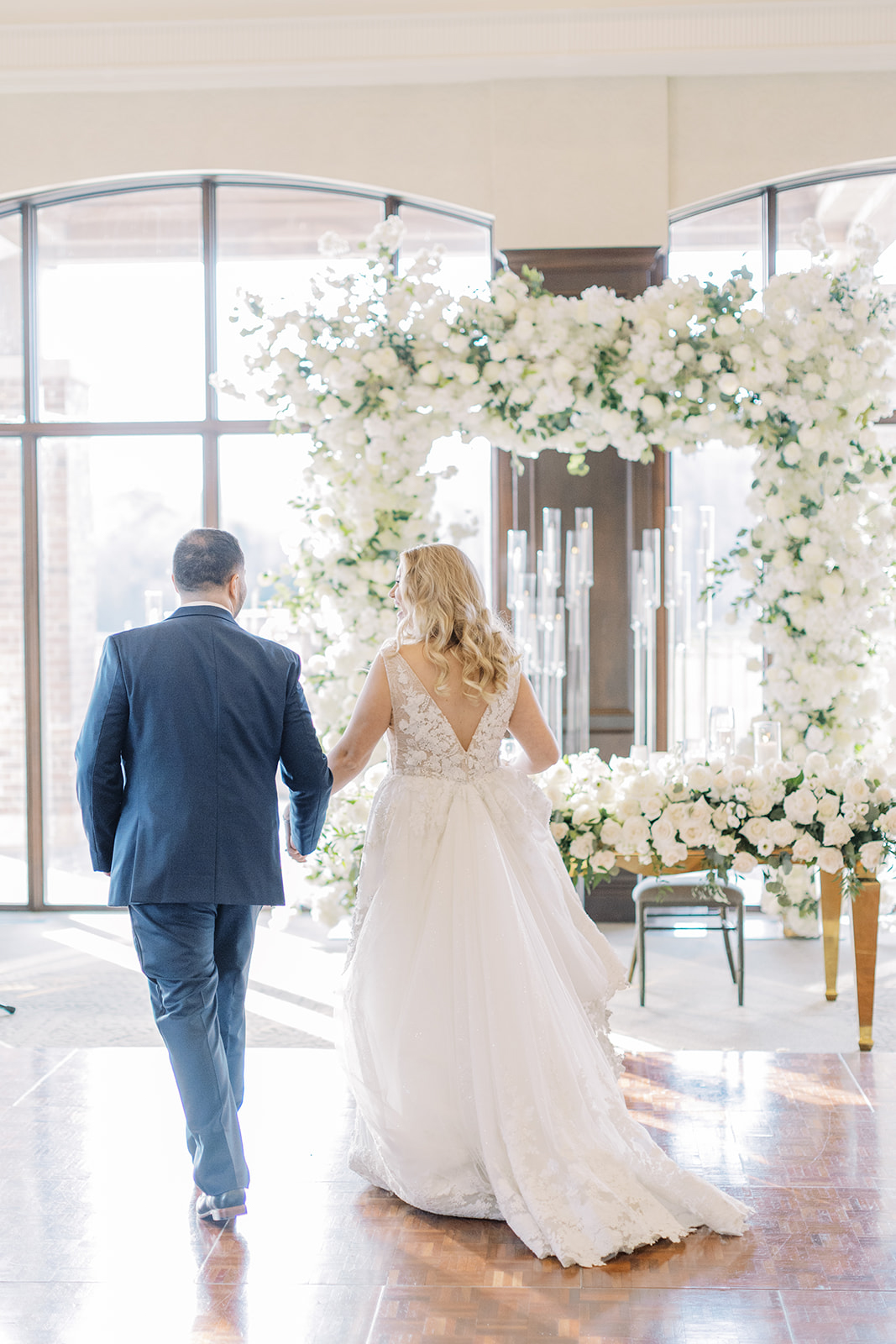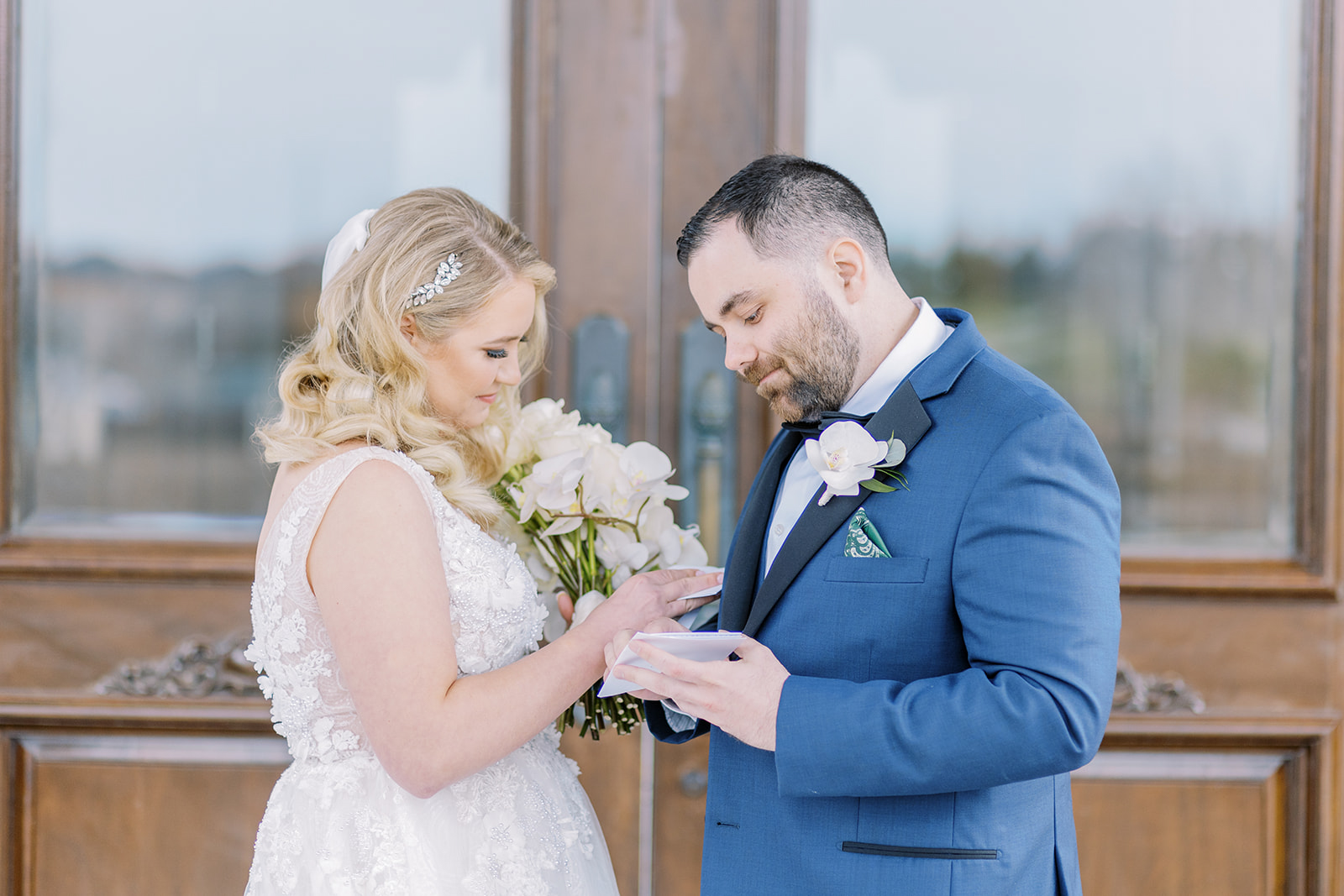 It all took place in front of the large wooden doors at Eagles Nest Golf Club. They shared an intimate first look and then exchanged handwritten letters. This is precisely when he teared up.