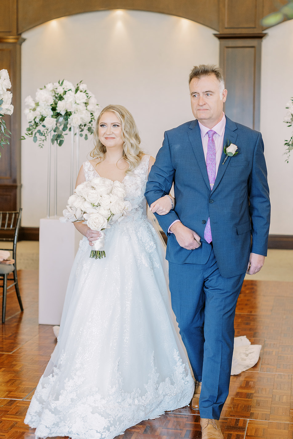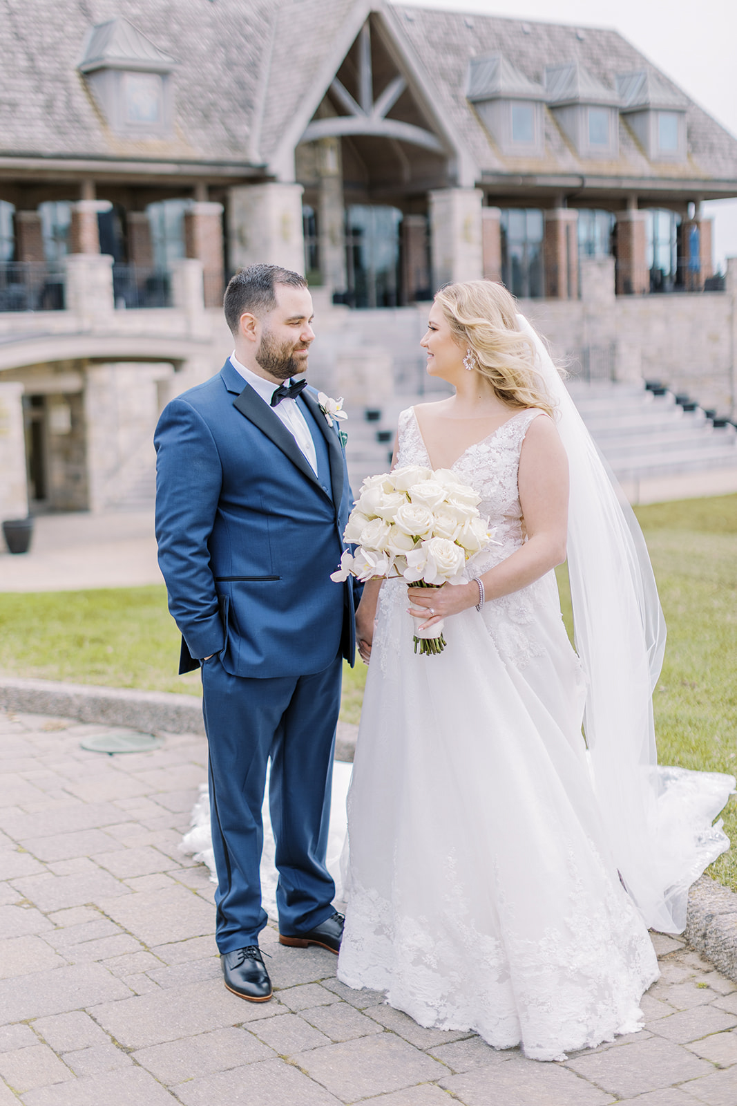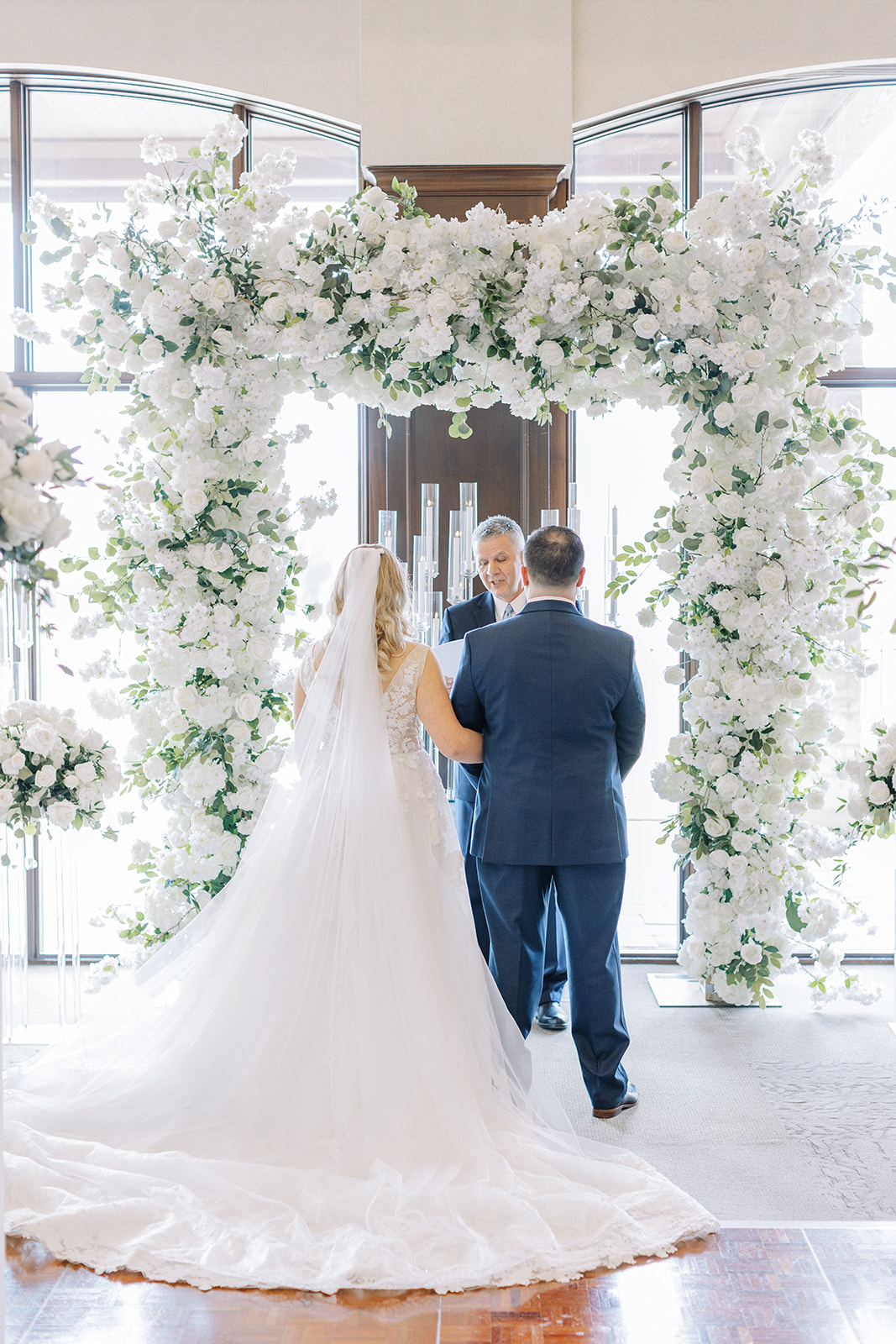 It all took place in front of the large wooden doors at Eagles Nest Golf Club. They shared an intimate first look and then exchanged handwritten letters. This is precisely when he teared up.